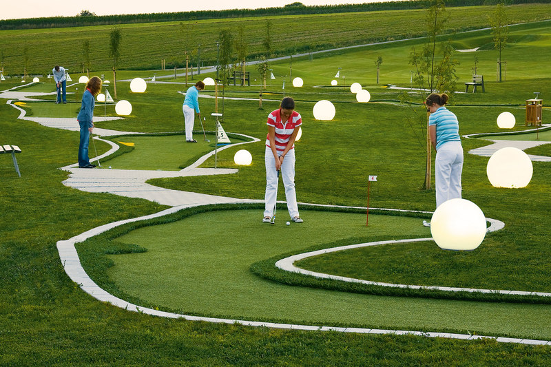 Da kann es schon mal vorkommen, dass die Oma mit dem Enkel die ersten Golfversuche macht und Gefallen daran findet. Auf unserer wunderschönen, nachts harmonisch beleuchteten spiel!Golf-Anlage ist immer Betrieb. Hotelgäste mischen sich mit Einheimischen genauso wie Kinder, Jugendliche und Erwachsene.