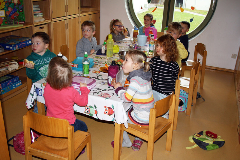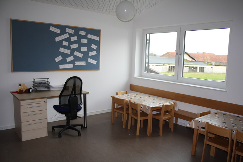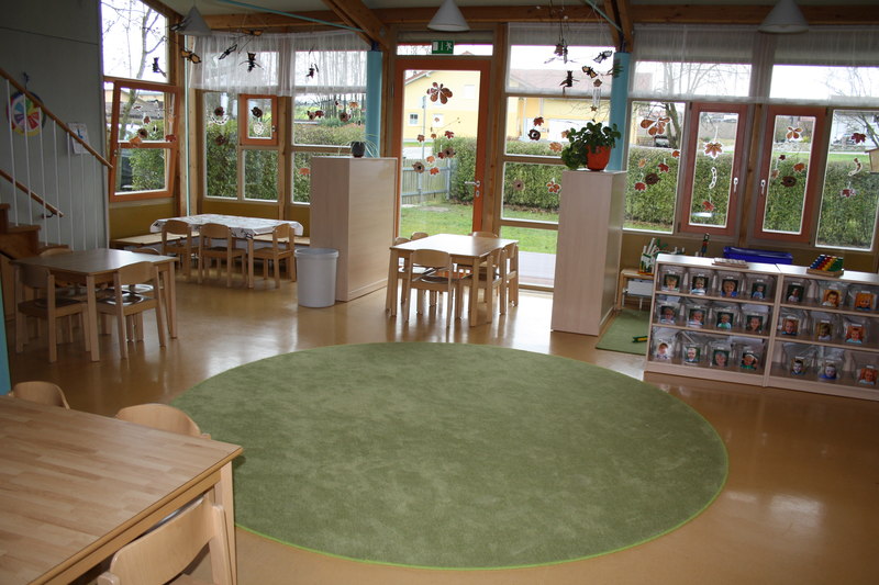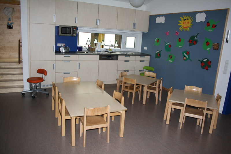 Hier befindet sich auch der große Pausetisch für die gruppenübergreifende, gleitende Brotzeit.