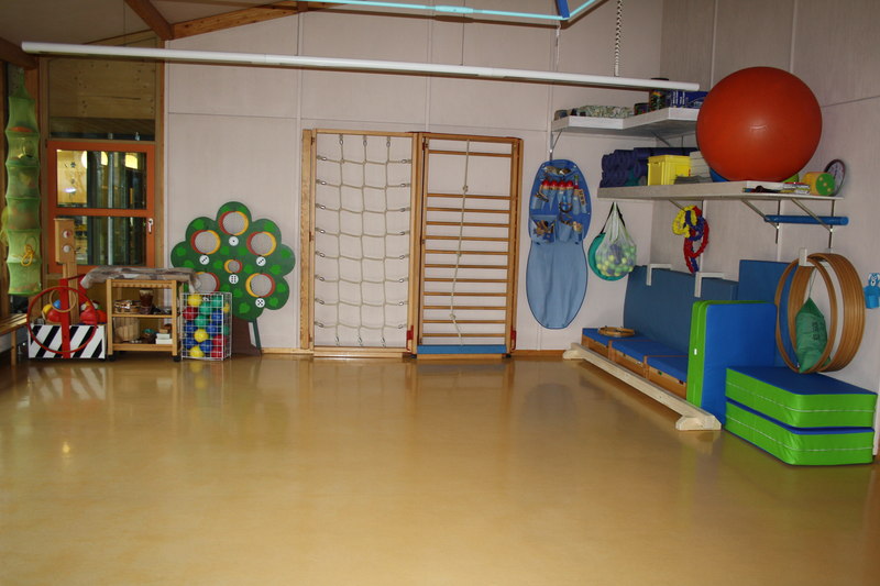 Die Gruppenräume sind individuell gestaltet und verfügen jeweils über eine Spielterrasse und zwischen den beiden Gruppen befindet sich ein Intensivraum für Teilgruppenangebote. Ein großer Turnraum zum Toben sowie ein großes Kinder-Bad mit vier Toiletten, großem Waschbereich, Dusche und Wickelbereich gehören zum Kindergarten. Ebenso wie eine Personalküche, Personal-WC und das Büro.