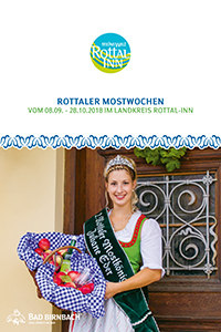 Rottaler Mostwochen 2018 vom 08.09. - 28.10.2018 im Landkreis Rottal-Inn Begleiten Sie uns auf eine kulinarische Mostreise ins Rottal. |